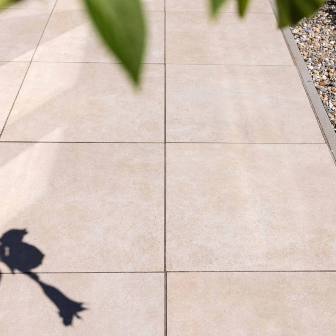 Keramische tuintegel van 60x60 cm en 3 cm dik in rustige beige tint. Gemaakt van full body keramiek van de hoogste kwaliteit. Bestand tegen krassen, verkleuring en alle weersinvloeden. Geschikt voor elk type terras. Een keuze voor jaren!